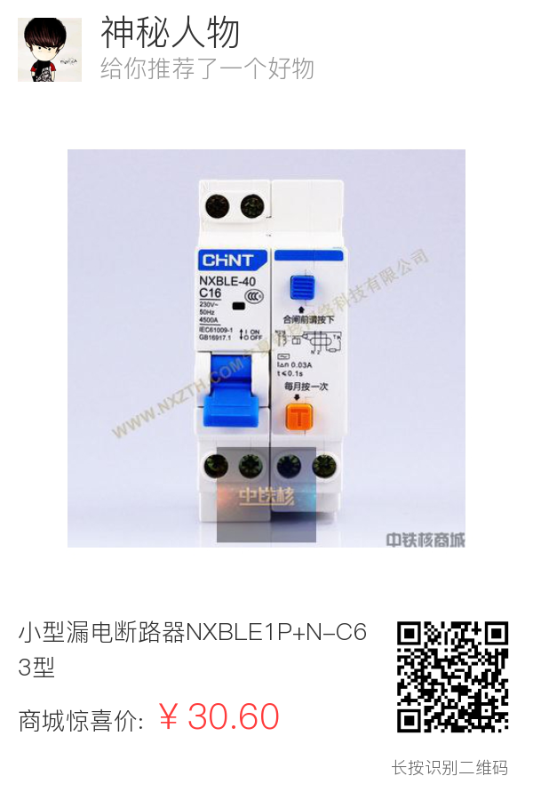 小型漏电断路器NXBLE1P+N-C63型