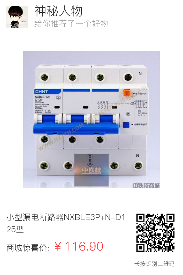 小型漏电断路器NXBLE3P+N-D125型